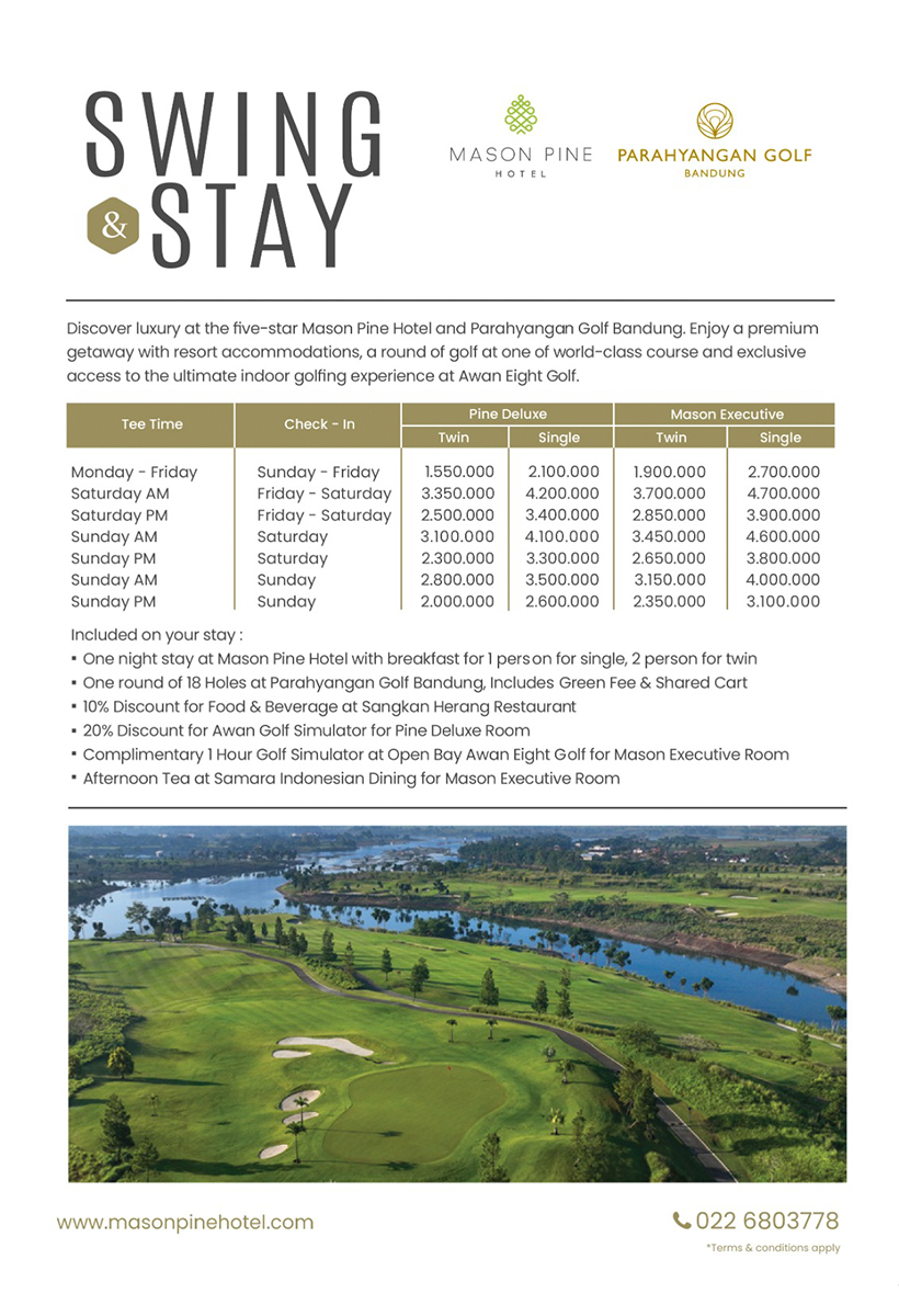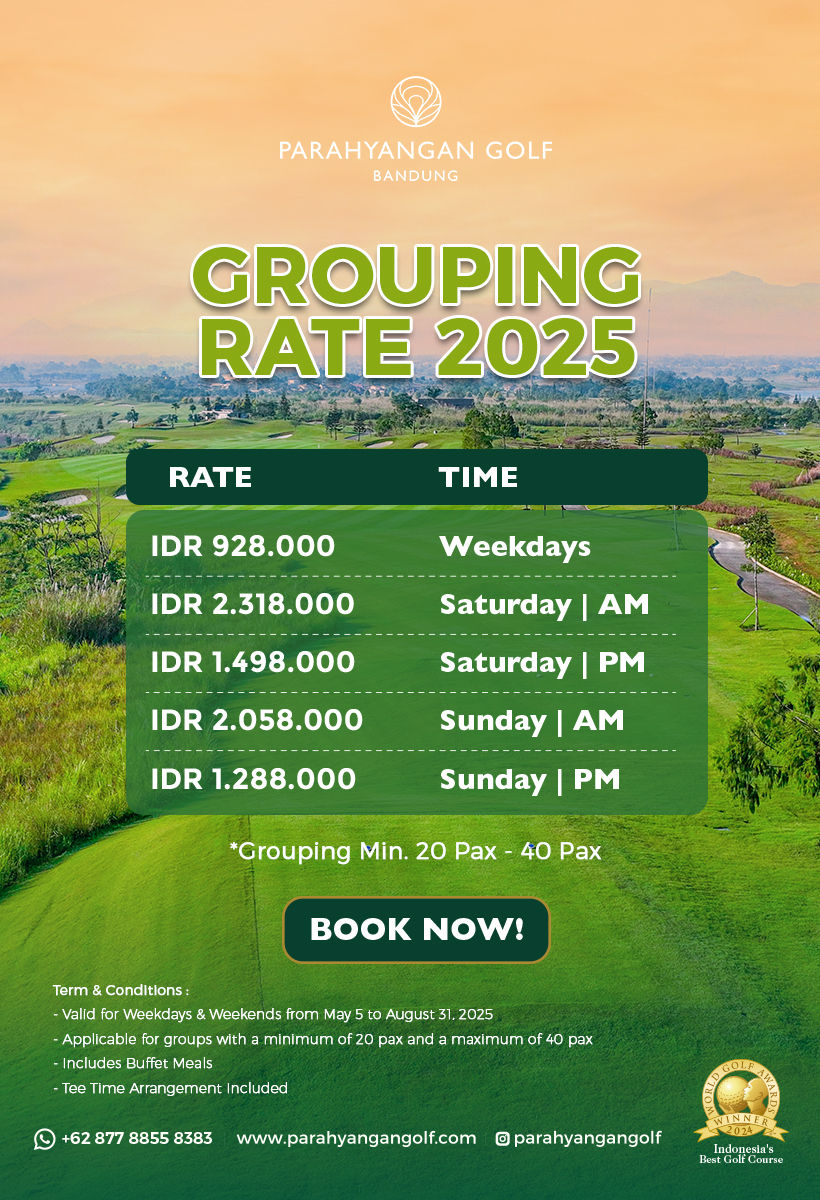 For generations, Parahyangan, often interpreted as a place where hyangs or gods reside, is mentioned in Sundanese legend as a land created when the gods smile and pour out all their blessings. Allow nature’s masterpiece to guide your ultimate golfing experience in Parahyangan Golf Bandung.